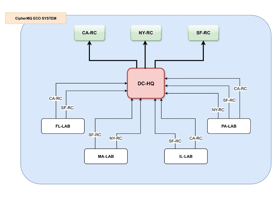 CA-RC: Receives and decrypts messages from FL-LAB, PA-LAB, IL-LAB.